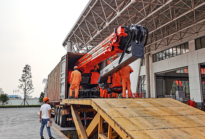 7、小臂變幅角度達240°,可回勾,均可集裝箱運輸。